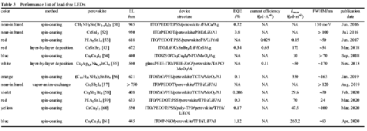 表3 无铅钙钛矿LED的性能表